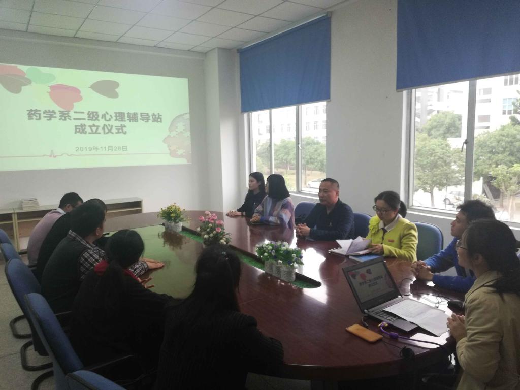为建立健全学校心理咨询辅导与心理危机干预四级网络体系,规范药学系大学生心理健康教育与宣传工作,2019年11月28日,在药学系会议室举办二级心理辅导站成立仪式。