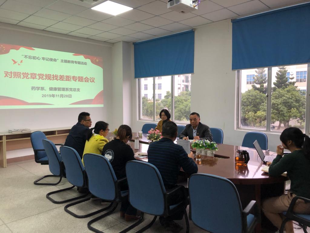 11月28日,药学系党总支在系部会议室召开“不忘初心、牢记使命”主题教育对照党章党规找差距专题会议。学院纪委书记、第四巡回指导组组长游锋及巡回指导组成员护理系党总支专职组织员许慧琼列席专题会,药学系党总支书记郑力宏主持会议。