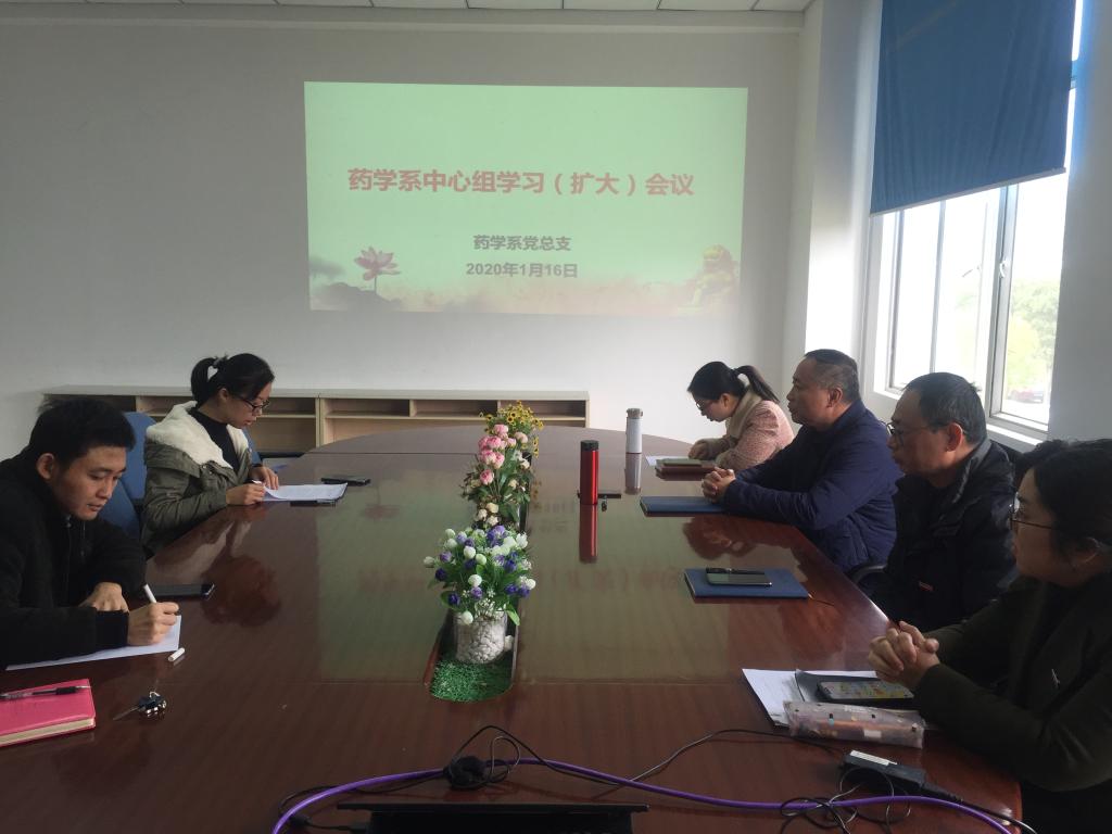 2020年1月16日药学系党总支在系部会议室召开中心组学习(扩大)会议,集中学习习近平在“不忘初心、牢记使命”主题教育总结大会上的讲话精神、《习近平在福州》(三)(四)等内容,会议由药学系党总支书记郑力宏主持。