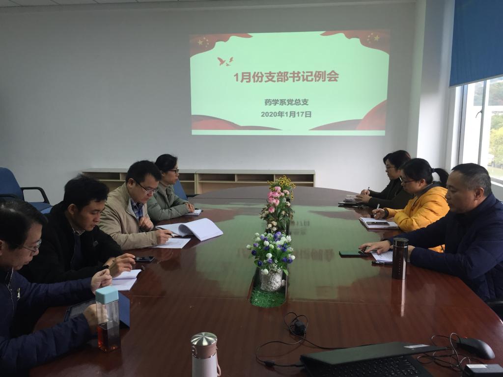 2020年1月16日,药学系党总支在系部会议室召开1月份支部书记例会,会议由药学系党总支书记郑力宏同志主持。