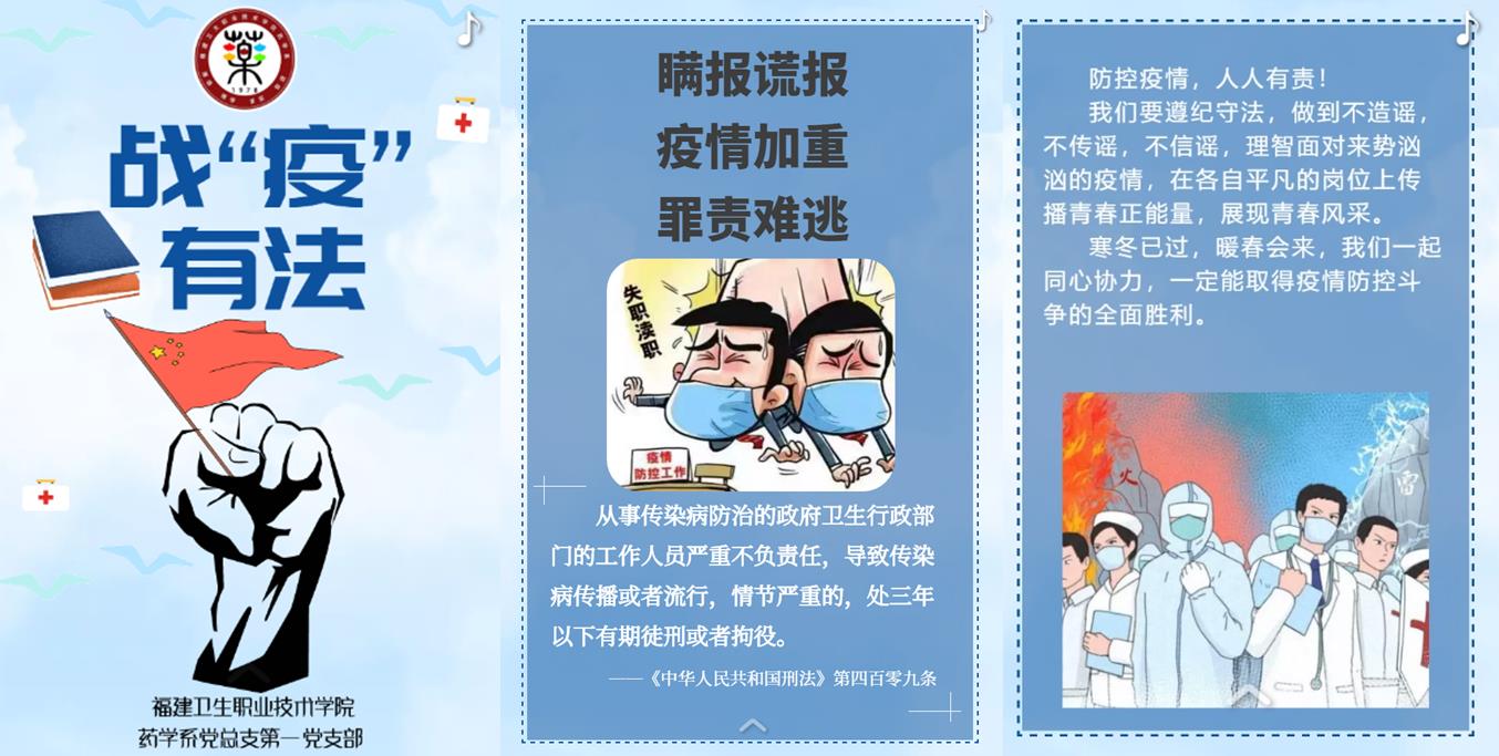 “佩戴口罩固然可以阻断新冠病毒的飞沫传播,但却难以阻断网络“喷子”的飞沫传播,培养学生的法律意识,帮助学生知法、守法,是《医药市场营销》课程思政的切入点之一。” 药经管教研室主任郑炜老师侃侃而谈,她是药学系第一党支部的优秀党员,这段时间她积极响应支部号召,组织人手制作了题为“万众一心,战‘疫’有法”的H5,对疫情防控过程中容易被忽视的违法行为进行了宣传,她主讲的在线课程,通过“云班课”的头脑风暴功能,组织学生分析热点事件,坚定守法意识,受到学生们的欢迎。