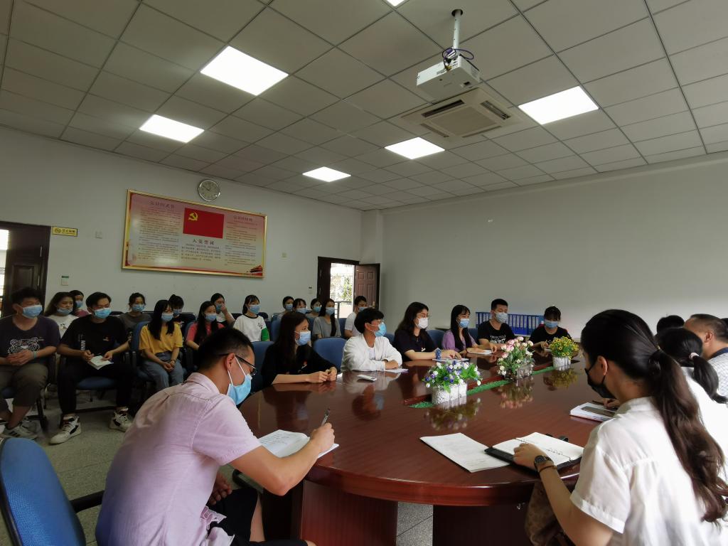 2020年6月11日药学系在系部会议室召开团学干部座谈会,药学系党总支书记郑力宏、副书记赖文金、团总支书记郑卫敏、团总支副书记林舒畅及全体18级团学干部到场参会。