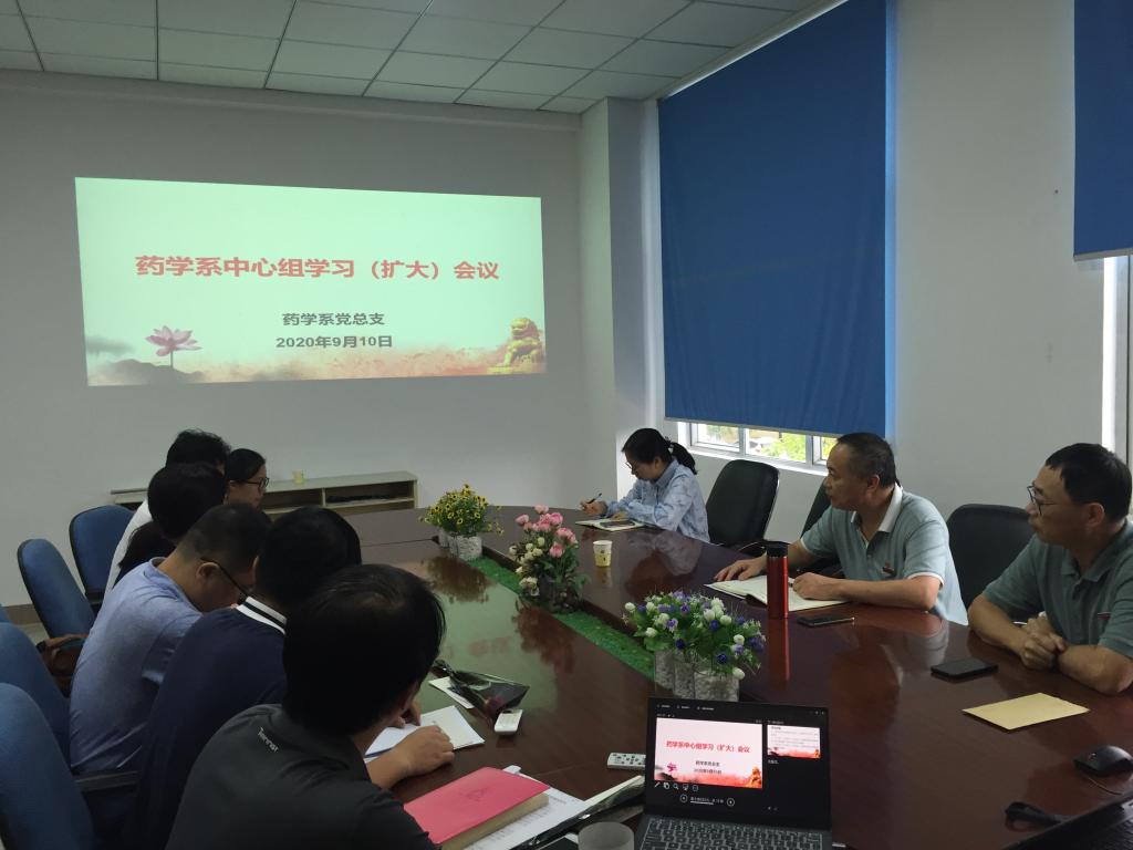 2020年9月10日,药学系党总支在系部会议室召开中心组学习(扩大)会议,会议由药学系党总支书记郑力宏主持。