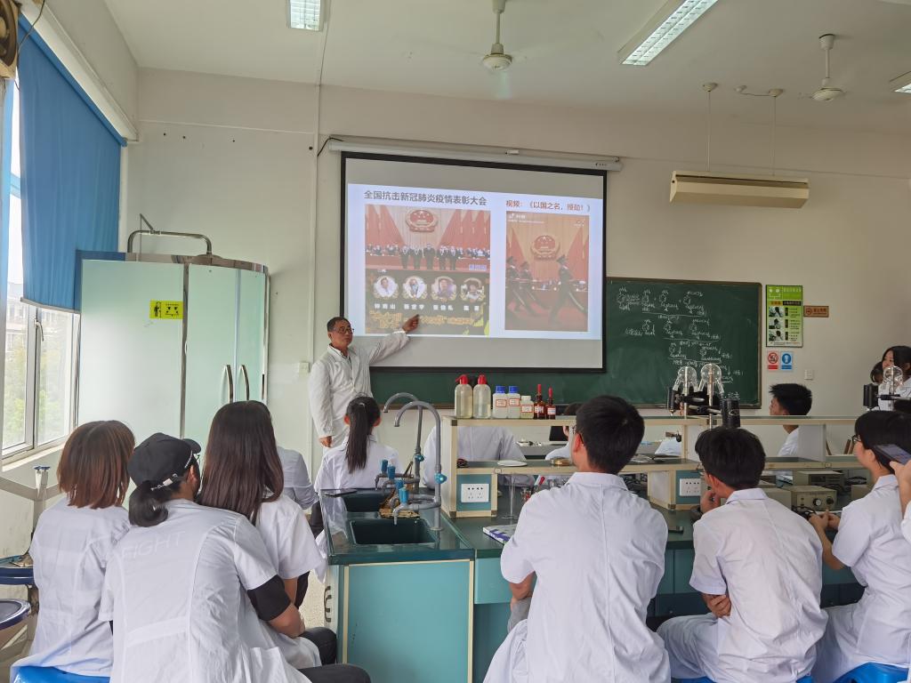 2020年10月12日,药学系肖健副主任在系部408教室为19级学生讲授以《同心战“疫” 共筑中国力量》为题的形势与政策课。