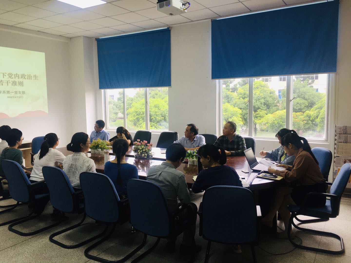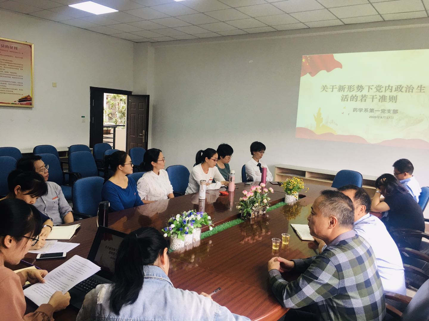 2020年9月17日,药学系第一党支部在系部会议室组织学习《关于新形势下党内政治生活的若干准则》,全体党员到场学习。