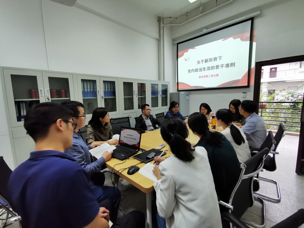 2020年9月15日,药学系第二党支部在药学系202会议室开展《关于新形势下党内政治生活的若干准则》专题学习会,本次专题学习由支部书记邓元荣同志主持。