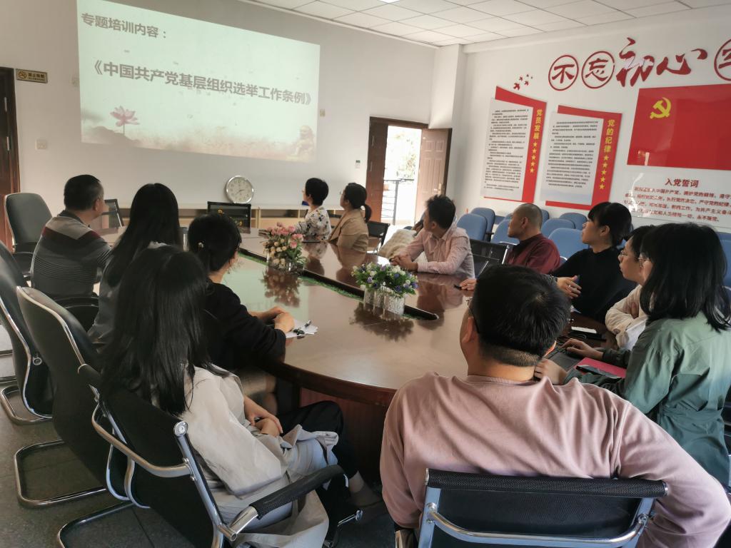 会上,总支专职组织员黄嵩梅带领全体党务干部共同学习了《中国共产党基层组织选举工作条例》,并从总则、代表的产生、委员会的产生、选举的实施、呈报审批、纪律和监督、附则等七个方面内容进行全面阐述。随后,郑力宏就学习贯彻落实条例提出明确要求,他指出各党支部要组织全体党员开展专题学习,全面掌握条例主要内容,并领会条例精神实质,进一步增强基层组织建设。最后,郑力宏就近期总支即将开展的换届选举会议作工作部署。