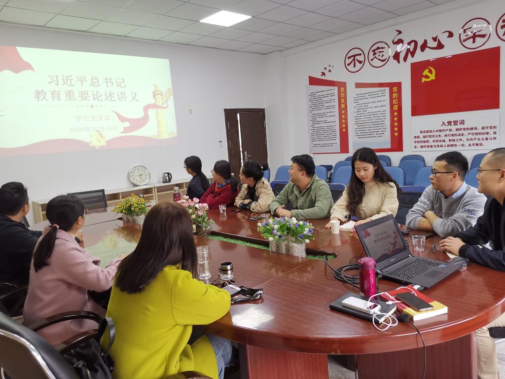 10月15日,药学系学生党支部召开学习习近平总书记教育重要论述讲义导言专题党课,支部陈翰书记主讲,支部全体党员出席。