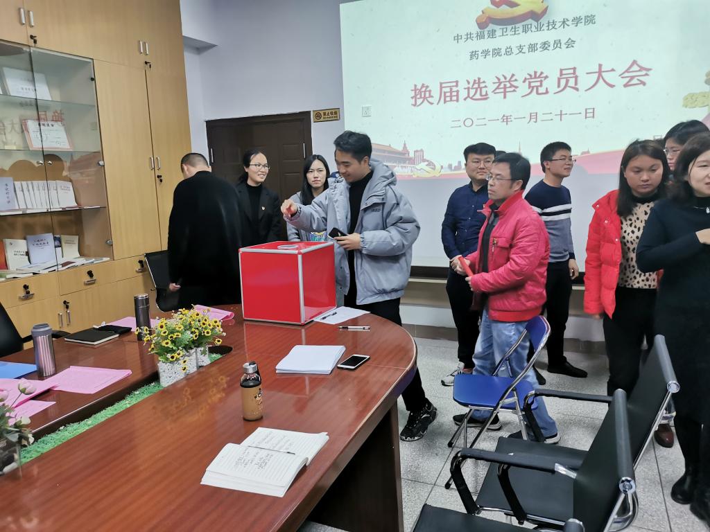 大会严格按照《中国共产党章程》、《中国共产党基层组织选举工作暂行条例》和院党委的有关规定,先后表决通过了药学院党总支部工作报告的决议(草案)、《中共福建卫生职业技术学院药学院党总支部换届选举办法(草案)》、监票人、计票人名单,采取无记名投票方式选举产生了新一届药学院党总支委员。换届选举党员大会圆满完成各项议程,在雄壮的《国际歌》中闭幕。