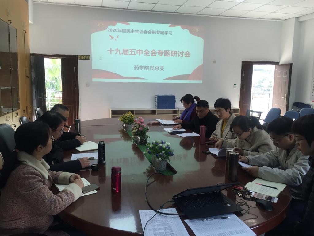 2021年1月18日,药学院党总支在207会议室组织召开中心组学习会暨2020年度民主生活会专题研讨,药学院党总支委员、各支部书记到场参会。会议由药学院党总支书记郑力宏主持。
