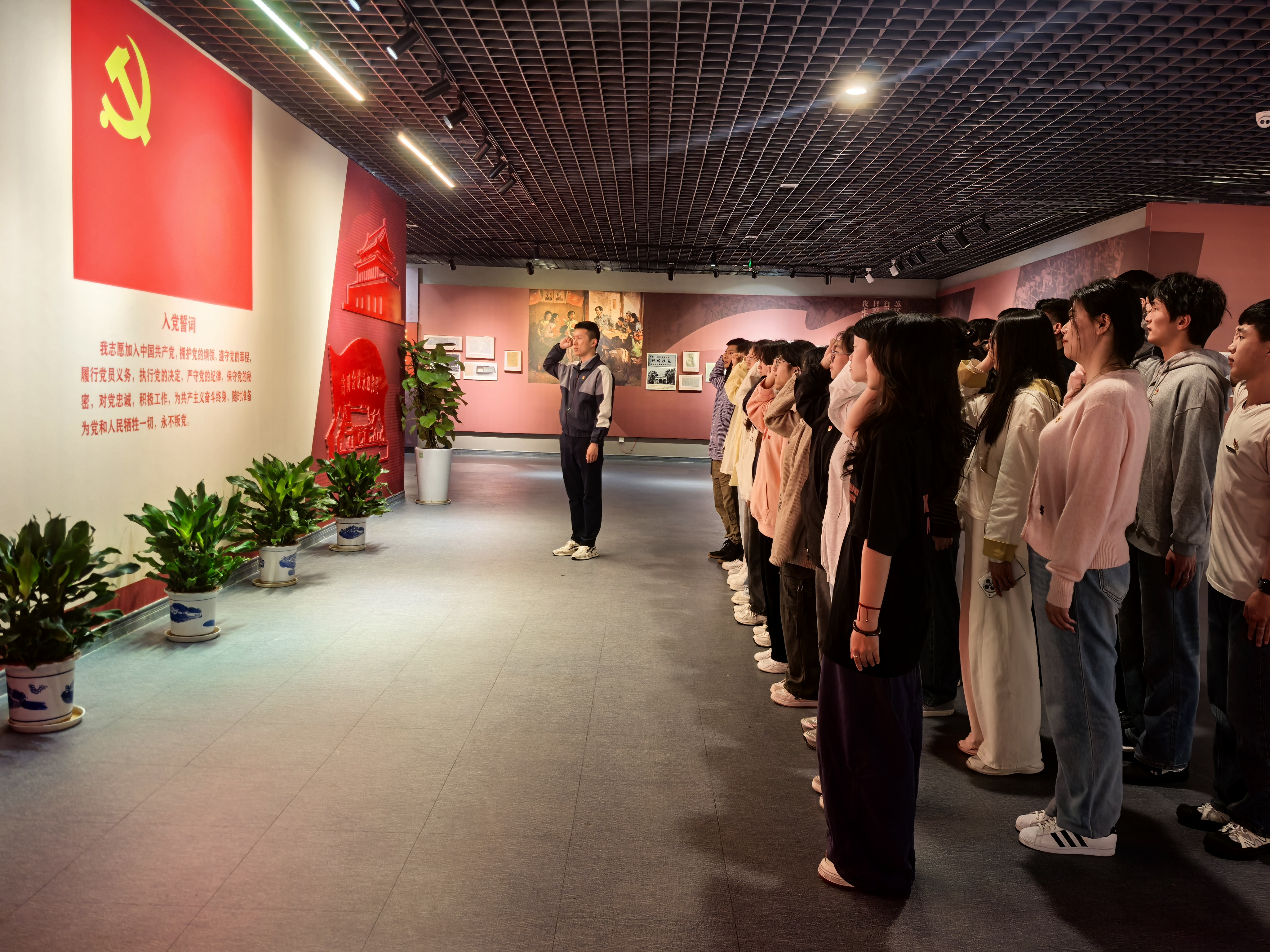 活动最后,在药学院第三党支部书记周凯阳的带领下,全体党员面向党旗进行入党宣誓,重温入党誓词。一句句铿锵有力的誓言在场地回响,这是对党许下的郑重承诺,彰显着共产党员的责任与使命,激发师生党员在新征程上树立不懈奋斗的意志和力量。