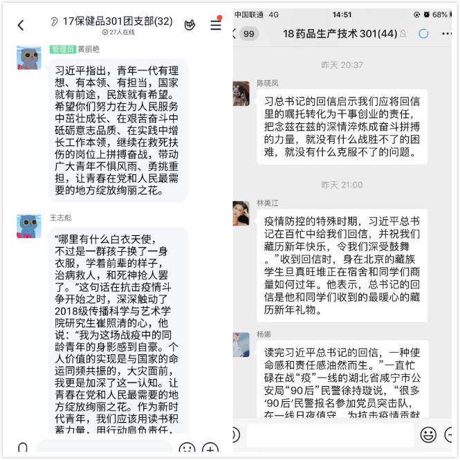 3月15日,习近平总书记给北京大学援鄂医疗队全体“90后”党员的回信,向他们和奋斗在疫情防控各条战线上的广大青年致以诚挚的问候。习近平总书记暖心的话深深感染着中国青年,我系青年学子也备受鼓舞,药学系团总支组织各班团支部通过学习贯彻习近平总书记重要回信精神,希望用实际行动践行新时代青年的责任与担当。