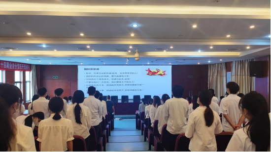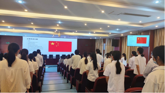 主持人宣布药学院第二十四期业余分党校开班典礼正式开始,全体起立,奏唱国歌