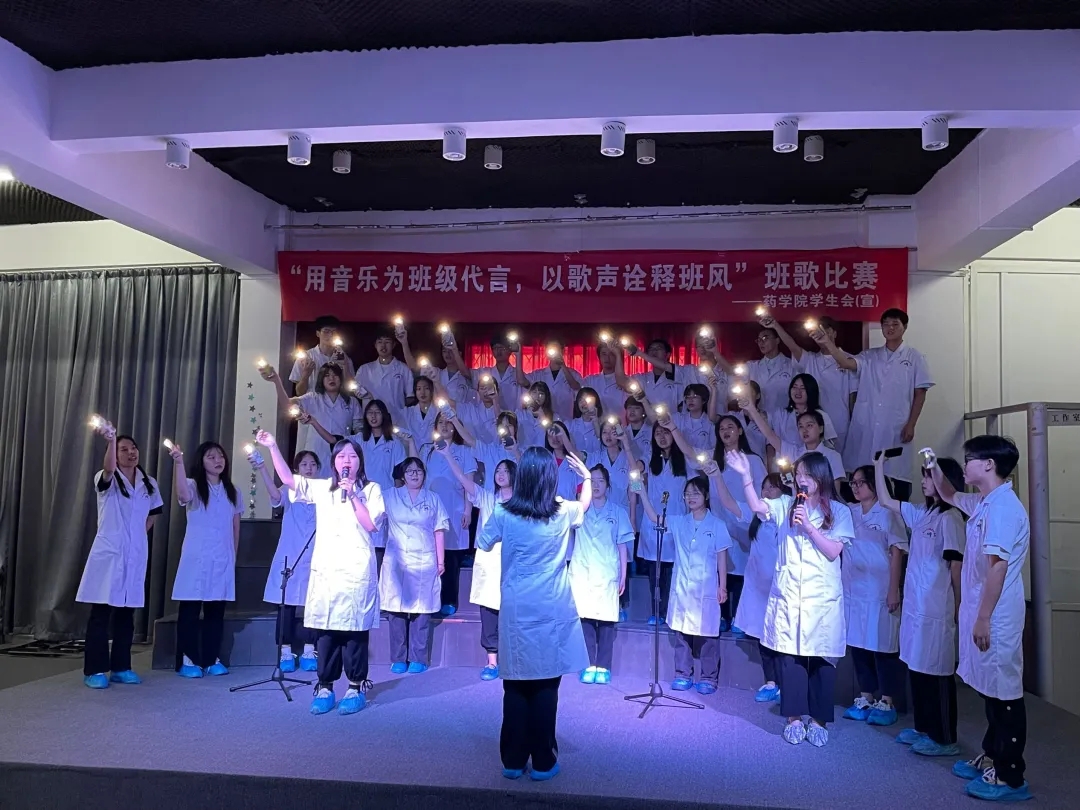 为进一步加强大学生思想道德建设,展示新时代大学生的青春风采,丰富校园文化生活,增强班级凝聚力,药学院于2022年5月19日下午在明湖三楼师生活动中心举办以“用音乐为班级代言,以歌声诠释班风”为主题的班歌比赛。药学院关工委郑力宏副主任、党总支赖文金副书记、肖健副院长以及全体辅导员参加了本次活动并担任比赛评委。