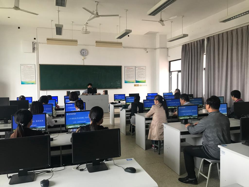 临床医学系新购进的《中国医院考试系统》题库初步安装完毕,2019年10月24日上午组织全系专业教师及管理系国控专业教师分批在教学楼第5机房、可视化多媒体系统控制中心进行了两场使用培训会。