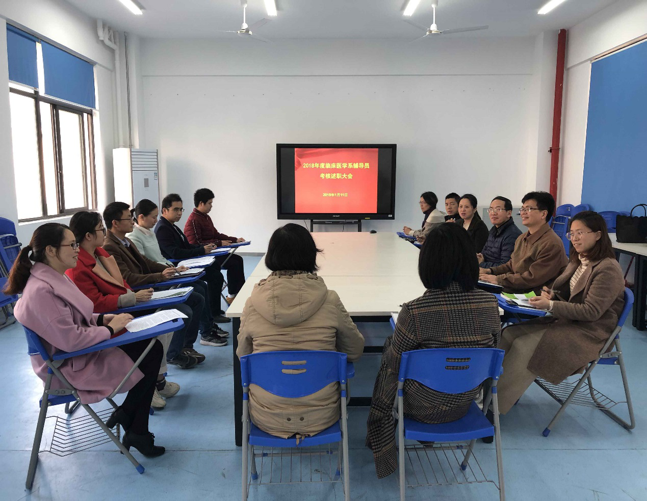 1月11日,临床医学系在实训楼401召开2018年度辅导员工作述职会议。会议由临床医学系党总支书记郭礼坚主持,系部考核小组成员及全体辅导员参加了本次述职会议。