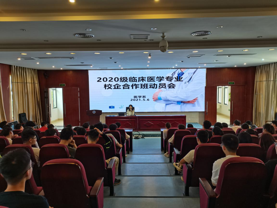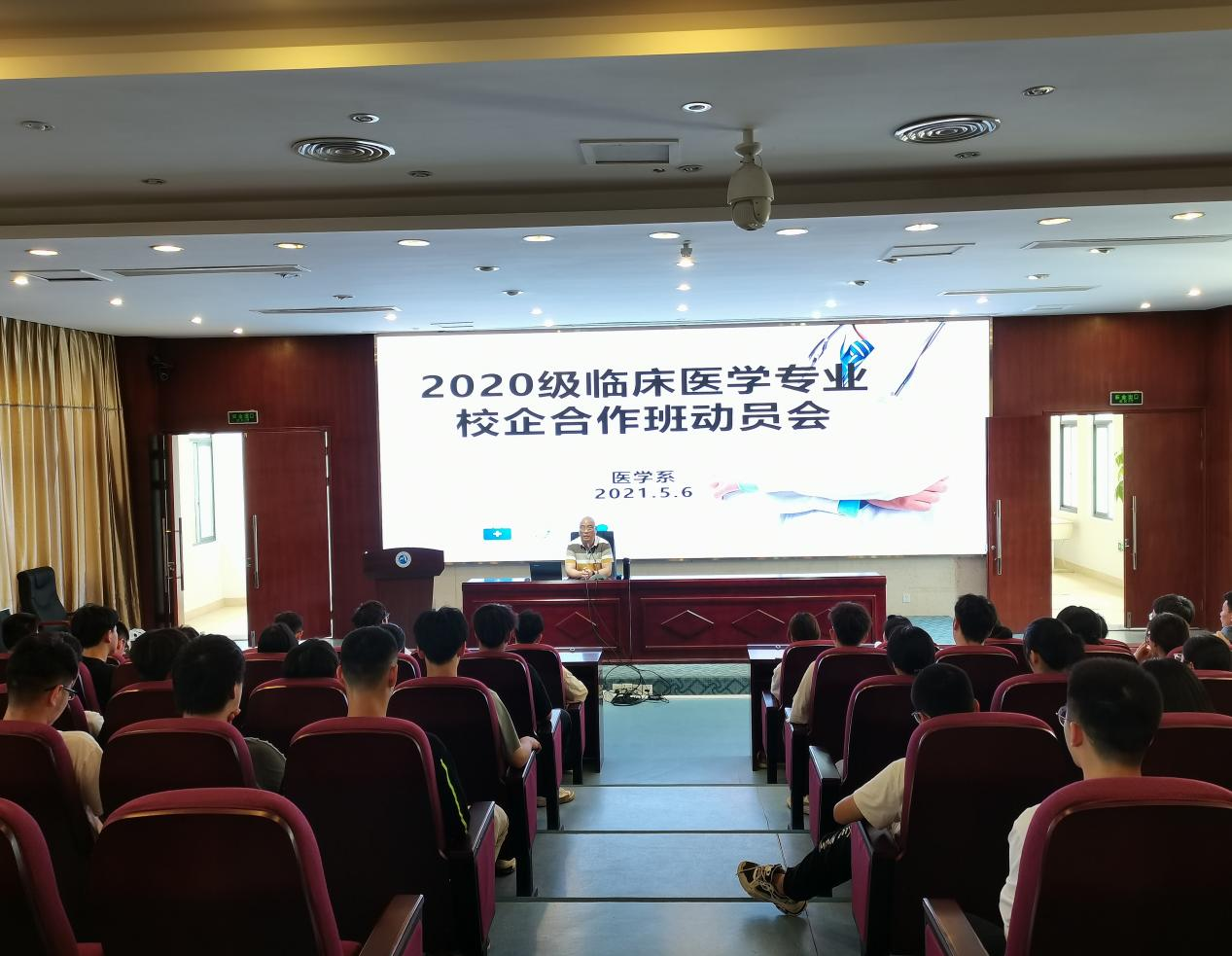 2021年5月6日,医学系在实训楼报告厅举办2020级临床医学专业校企合作班的动员会。医学系党总支书记邱滚忠、临床医学专业带头人王芳、相关辅导员及校企合作班学生参加了动员会。