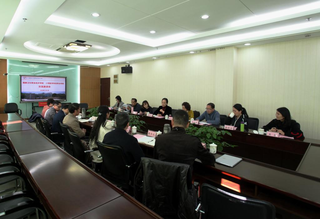1月7日上午,三明医学科技职业学院赖焕标副校长会见我校一行并陪同参观校园,结合专业实地考察了该校的实训中心、基础医学实验中心等。随后召开座谈会,就学校教育教学管理、专业建设、师资队伍建设、学生管理等情况开展座谈。下午我校一行来到沙县总医院,医院党委书记万小英与谢显金院长介绍了目前临床医学专业1+1+1教学模式的实施方法,实施内容和初步成效。