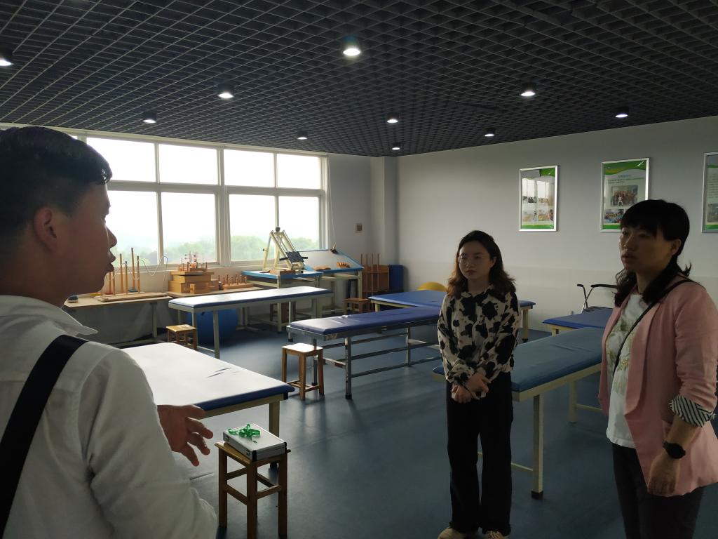 为了进一步列了解康复人才需求及岗位的技能要求情况,此次一行还参观考察了湖南省人民医院康复医学科。在接待人员的陪同下,两位教师参观了康复医学科的住院部、康复治疗部以及康复门诊,并参观体验了该科室的各类先进康复治疗仪器。通过与科室负责人、临床带教、实习生的交流过程中,了解面向康复治疗师的职业岗位群典型工作任务与职业能力需求,为后期优化课程体系的设置,修订人才培养方案、课程标准提供新的思路。