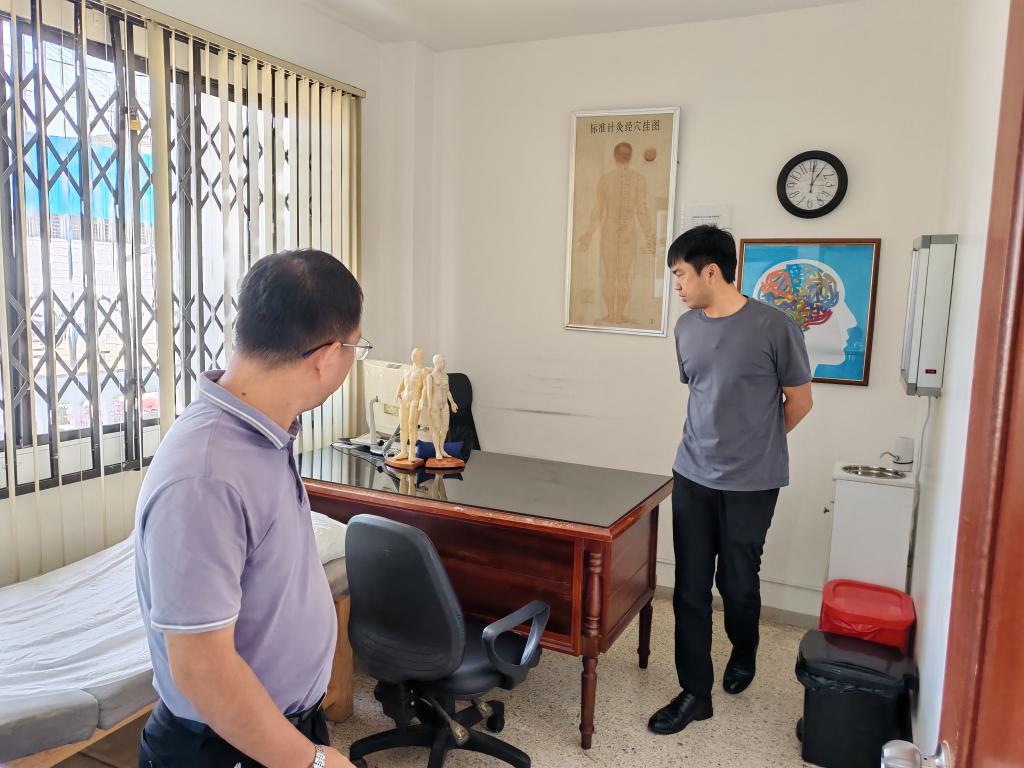 代表团同步走访东方中医诊所,调研运营与功能布局,了解诊疗流程、药材使用等情况,对诊所技术操作规范、设备设施摆放问题提出建议,双方商定后期共同促进中医诊所的规范运营。代表团向诊所输出的《中医康复技术专业教学标准》《中药学专业教学标准》,同时捐赠针灸包、理疗仪等器械。教师还现场示范针灸推拿技法,解答临床难题,提升诊所团队专业能力。