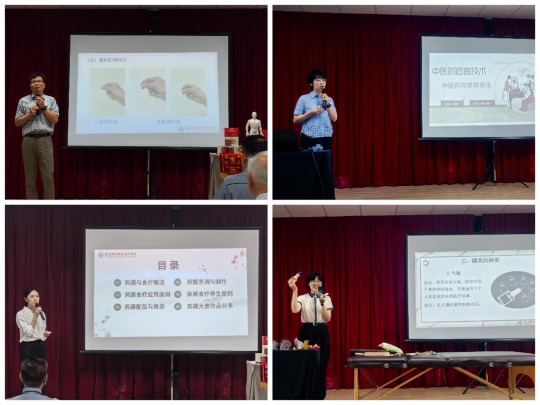 之后,主办双方开展七场“中医药适宜技术系列讲座”。福建卫生职业技术学院教师主讲了《针灸技术》《艾灸技术》《拔罐技术》《刮痧技术》《中医药与美容养生》《药膳与食疗》和《膝关节康复功法》等讲座,讲座围绕针灸、艾灸、拔罐、刮痧、中医美容养生等传统技艺,并融入药膳食疗、全身肢体康复功法等生活化养生内容,吸引大批当地民众及中医从业者踊跃参与,现场互动热烈,反响积极,充分展现了中医药文化的独特魅力与实用价值。