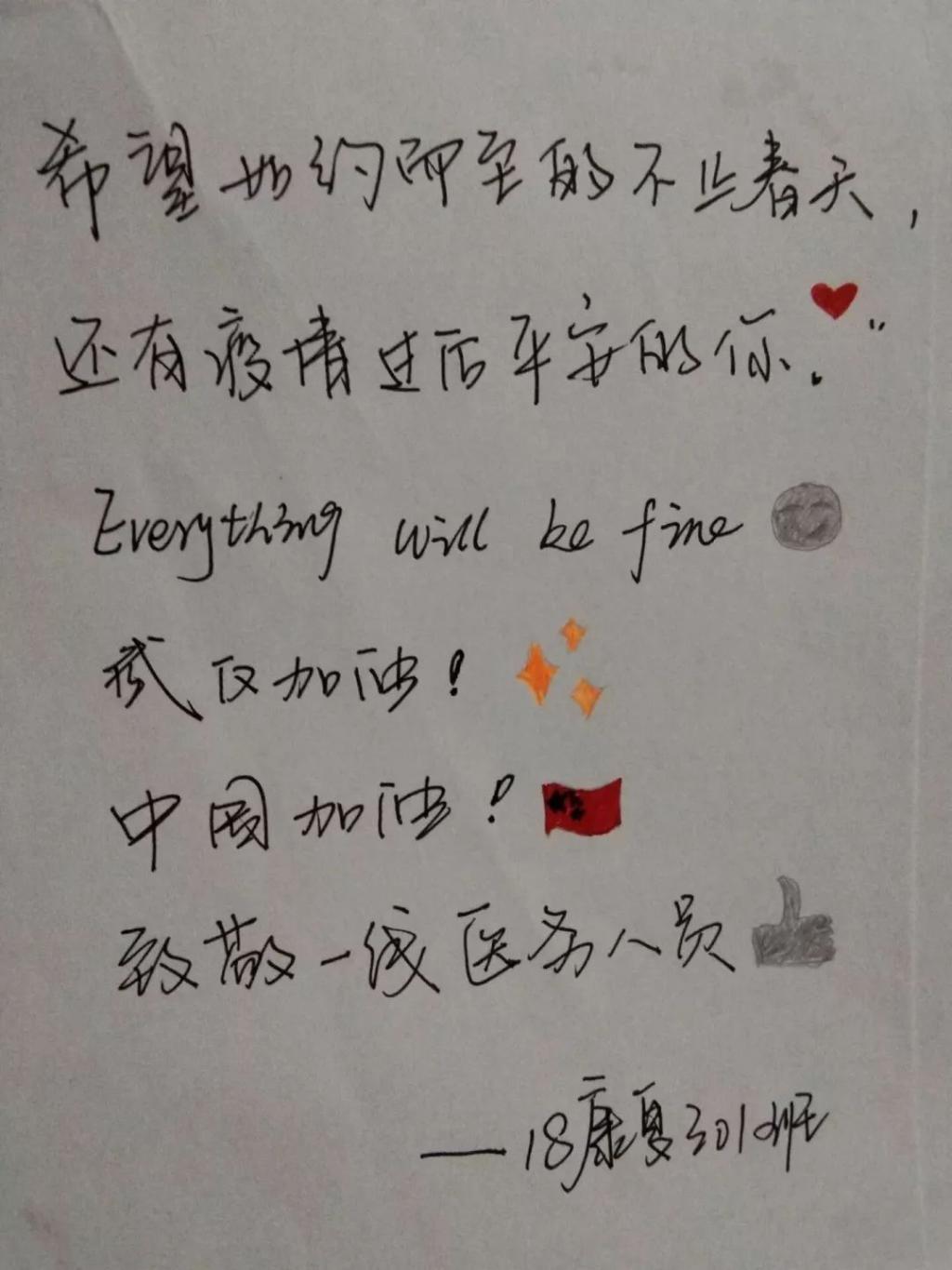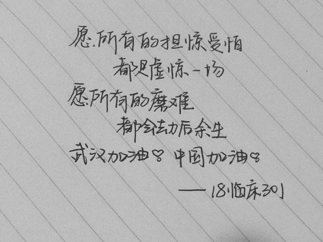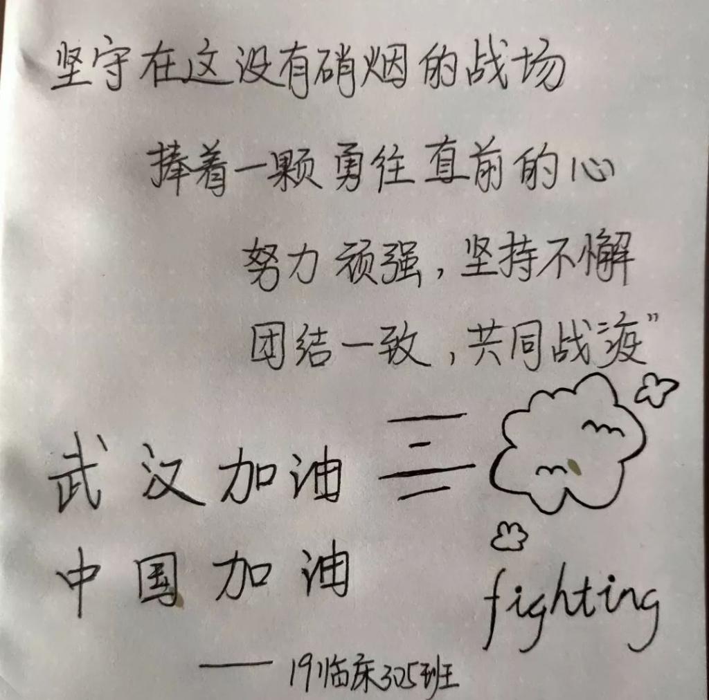 面对疫情我们众志成城。冬将尽,春可期。山河无恙,世间皆安。在我系团总支的组织下,我们身在各地的临床学子们共同参与写下了一句句满满的加油和祝福语。