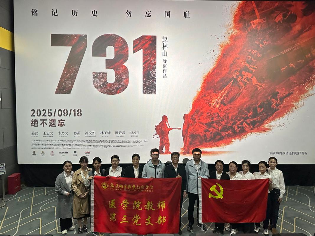 为深入学习贯彻党的二十届四中全会精神,进一步强化党员教师的历史自觉、民族自信与安全意识,11月13日,医学院教师第三党支部组织支部党员开展主题党日活动,集体观看爱国主义影片《731》。本次活动以“铭记历史、民族复兴、国家安全”为主线,通过回望沉痛历史,教育引导党员教师从中汲取前行力量,切实把学习贯彻全会精神落实到立德树人全过程。