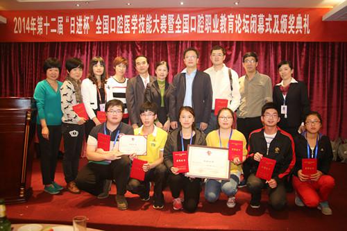 2014年11月14~16 日第十二届全国“日进杯”口腔工艺技术展评和口腔医学组技能大赛暨全国口腔职业教育论坛在我院隆重举办。我院喜迎全国各地52所高职院校的口腔教师及参赛的210位口腔学生,创下了历届高职口腔日进杯技能比赛人数最多的纪录。为了备战此次新增的口腔医学组的全国竞赛,口腔医学教研室在潘在兴主任领导下,于去年底就开始在2012级的口腔学生中选拔选手,参加了省级口腔医学技能大赛,在附属医院口腔教研室的陈小华、郑艾荣、叶起清、徐敏锐等老师精心指导下获得1个二等奖和3个三等奖的优异成绩。在先期集训的基础上,此次全国口腔医学技能大赛由马清璇、徐敏锐老师负责,强化学生的技能操作,历经1个多月集训,12级口腔医学301班黄丽文力压22位其他选手,最终夺得了本次全国“日进杯”口腔医学口腔修复组第一名,刘栋获牙体牙髓组优秀奖,我院荣获全国口腔医学组团体第三名。徐敏锐和马清璇老师获口腔修复组优秀指导教师奖 在口腔医学技术牙体雕刻和全口排牙竞赛中,我院选手面对160位各院校高手,不畏强手,奋勇拼搏,在陈枫、郑艾荣老师指导下12级口腔医学301班蔡栋钧、傅建东获得牙体雕刻组三等奖,在徐敏锐、马清璇老师指导下12级口腔医学301班黄李汸获全口义齿排牙组三等奖,12级口腔医学301班吴小童获全口义齿排牙组优秀奖。陈枫老师、郑艾荣老师获牙体雕刻组优秀指导教师奖,徐敏锐老师获全口义齿排牙组优秀指导教师奖,我院获口腔医学技术组优胜团体奖。 此次第十二届全国“日进杯”口腔工艺技术展评和口腔医学组技能大赛暨全国口腔职业教育论坛的成功举办,促进了我院与各兄弟院校老师在技能型、实用型口腔医学人才培养模式的进一步交流和探讨,为我院培养高素质口腔专业技术技能型人才提供了很好的学习和展示的平台,极大地促进了我院口腔专业的内涵建设。