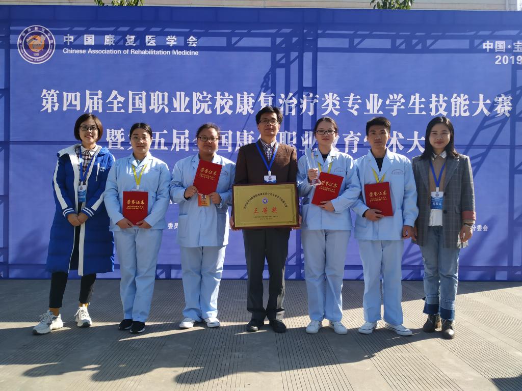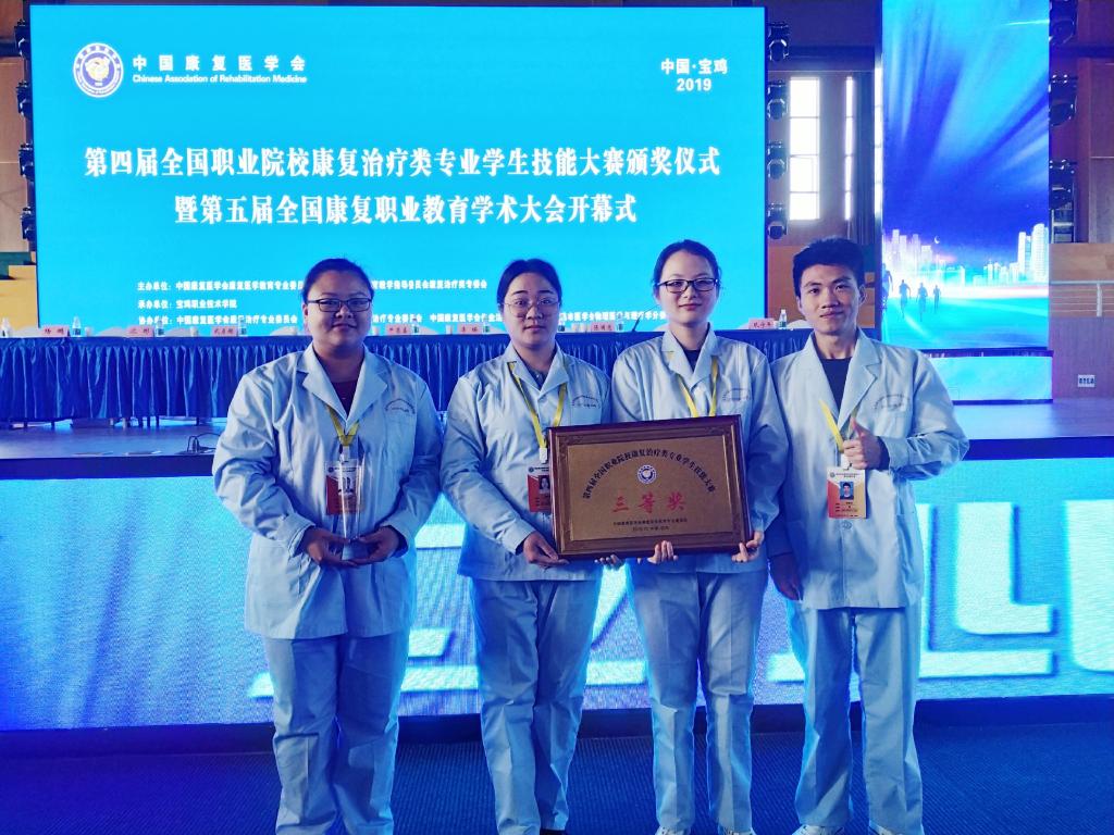 临床医学系陈铭副主任带队,携同康复教研室徐丽莺老师、郑松老师以及17级康复治疗技术专业的陈诗雨、程巧巧、吴金文、蔡艺艳四名选手参加了比赛。比赛按照理论比赛、康复问诊、康复评定、康复治疗四个项目进行,共设置个人单项奖、团体奖和精神风貌奖等奖项。参赛的4名选手不畏强敌,最终在71支高职高专院校的271名选手脱颖而出,获得团体赛三等奖,陈诗雨同学获康复问诊单项三等奖、程巧巧同学获个人精神风貌奖。值得一提的是,本次大赛首创个人“精神风貌奖”,是在所有参赛的271名选手中,按5%的比例评选而出,实属不易。