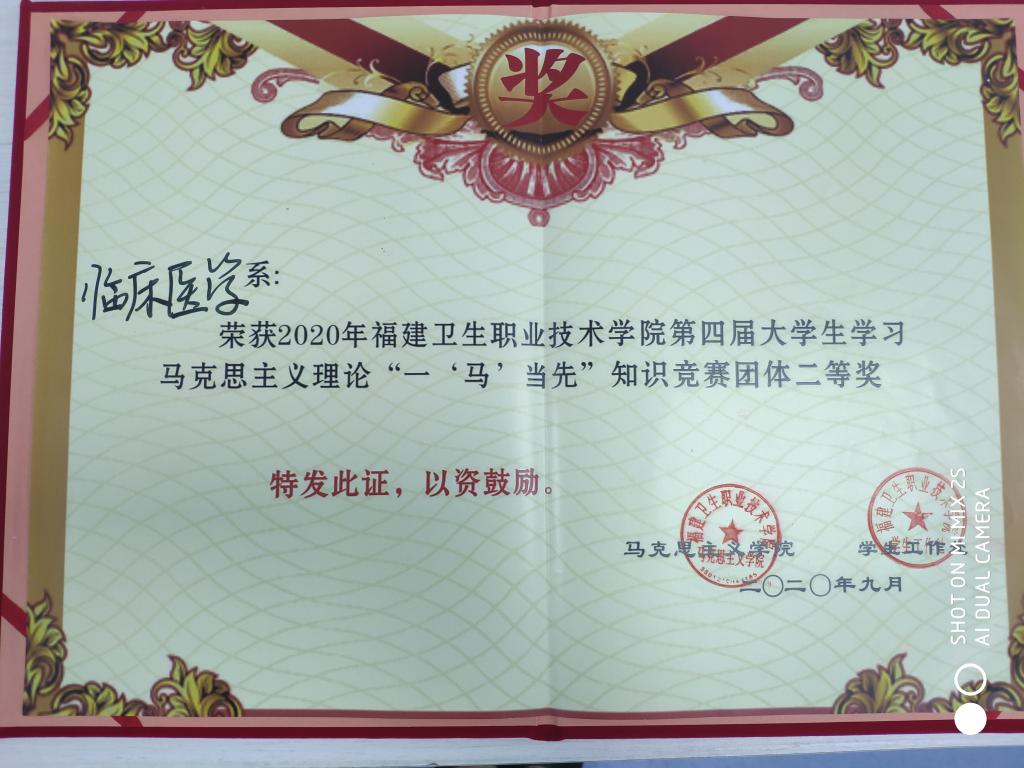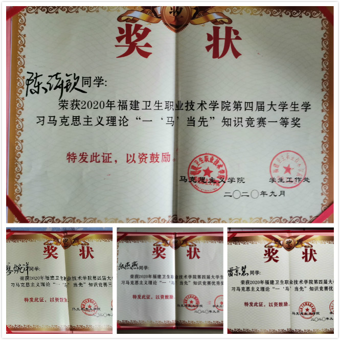 9月23日,我校第四届大学生学习马克思主义理论“一‘马’当先”知识竞赛的决赛在实训楼四楼报告厅举行。经过前期的初赛和复赛,我系派出了由19康复302廖婉洋、陈诗钦、19针推301张燕燕、19中医学301雷京慧四位同学组成的参赛队伍,通过必答环节、淘汰环节、对擂赛环节激励的角逐,我系荣获第四届大学生学习马克思主义理论“一‘马’当先”知识竞赛团体二等奖,同时19康复302陈诗钦斩获个人一等奖,其他三位同学分别荣获个人三等奖和优秀奖。