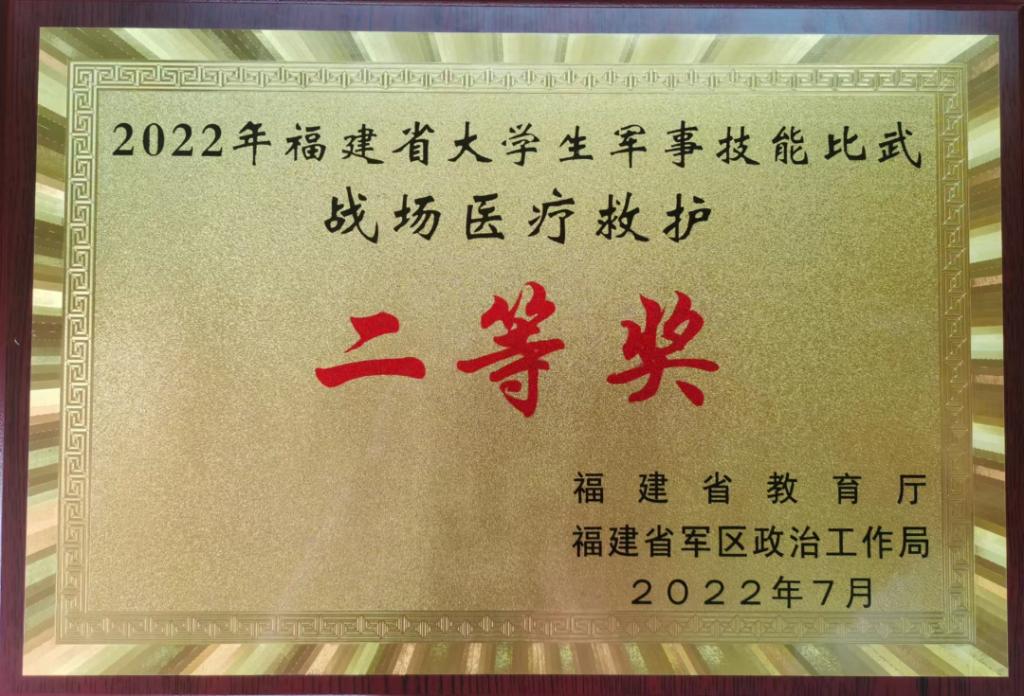 7月15日至17日,由福建省教育厅、福建省军区政治工作局主办,仰恩大学承办的2022年福建省大学生军事技能比武活动在泉州市仰恩大学举行,全省本科与高职院校共有58支队伍参赛。由我校医学院21临床302班吴泓瑾、21口腔302班杨哲鹏、21康复302班苏辉越、蓝金坤、任云枫和21康复303班吴晓莉6名学生组成的参赛队伍,通过积极的备战,获得2022年福建省大学生军事技能比武战场医疗救护项目二等奖的好成绩,位列参赛高职院校第一。