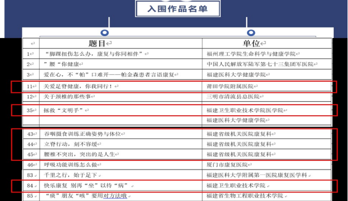 近日,由福建省医师协会康复医学科医师分会主办,福建医科大学附属第一医院、国家区域医疗中心福建省康复专科联盟、中澳康复联盟、福建省康复科普志愿服务队、福建医科大学健康学院共同承办的“首届福建省康复科普大赛”在福州长乐举行。