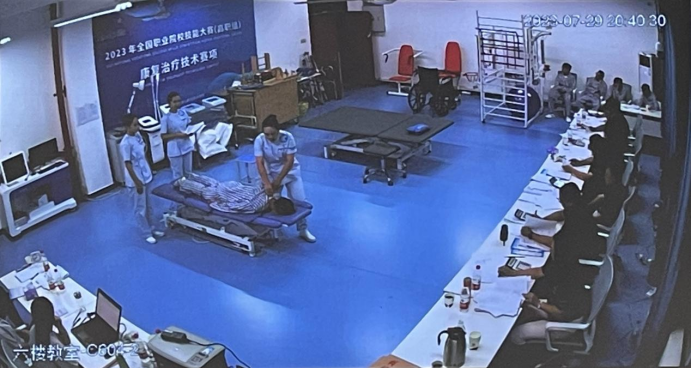 全国职业院校技能大赛2023年首次开设了高职组康复治疗技术赛项,赛项内容包括理论知识竞赛和技能操作竞赛两部分。理论知识竞赛采取计算机考试形式,旨在考核参赛选手的专业知识应用能力、临床思维能力、分析能力和解决问题能力。在技能操作竞赛中,三位选手顶住压力,沉着应战,克服末位出场的劣势,最终获得团体三等奖,充分展现康复治疗技术专业教学成果及人才培养质量。