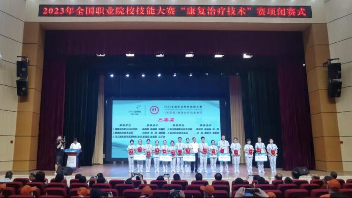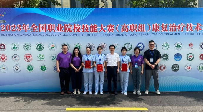 7月28日至7月30日,中华人民共和国教育部主办,湖北省教育厅、孝感市人民政府承办的2023年全国职业院校技能大赛(高职组)康复治疗技术赛项在湖北职业技术学院举行,53支代表队159名选手参加竞赛。经过激烈比拼, 我校医学院21康复301班连丽娟、陈丽婷、19 康复501陈鑫怡荣膺团体三等奖(指导老师:郑松、沈书泓)。