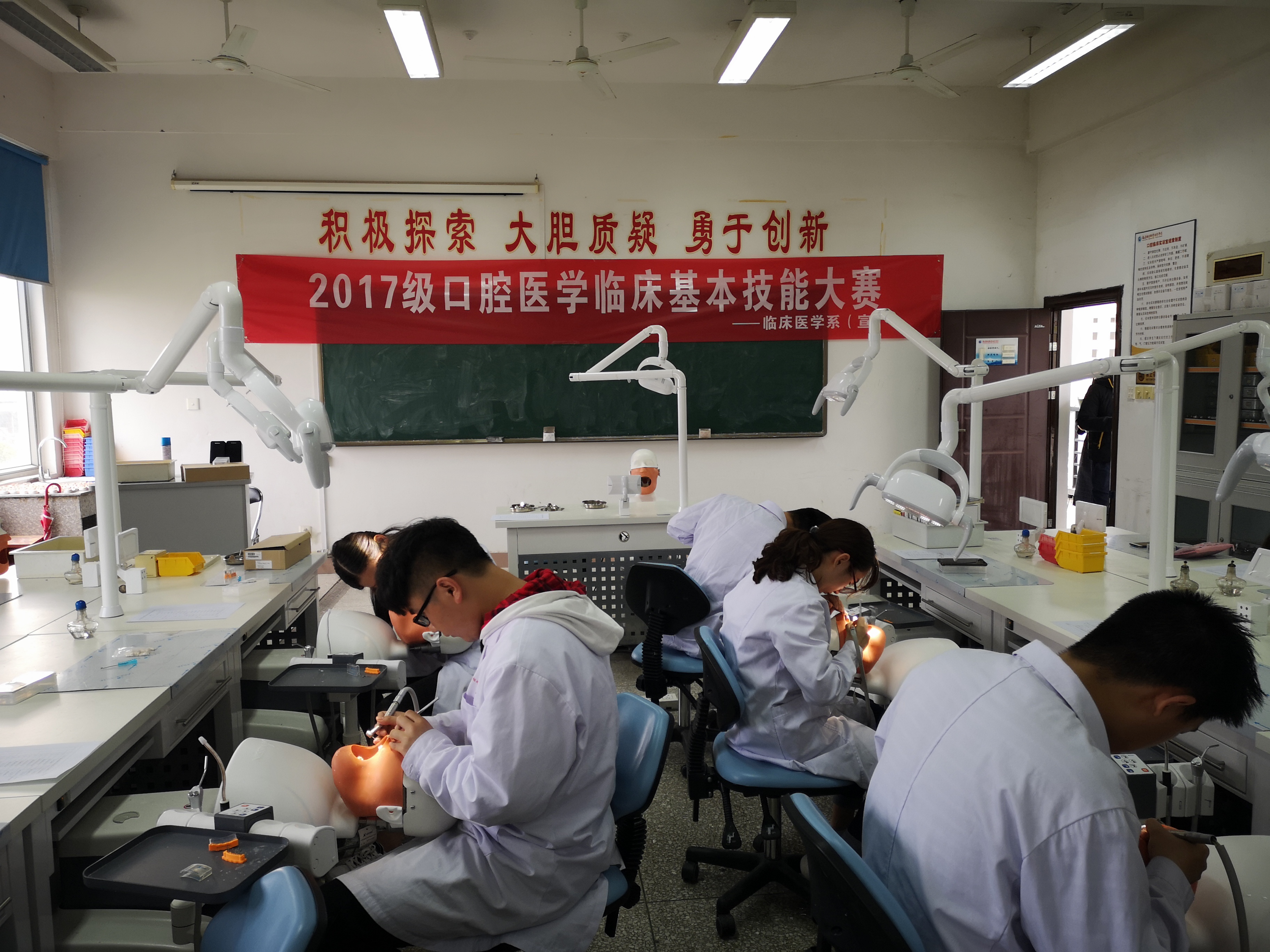 为增强同学们的动手能力、夯实自己的专业知识。临床医学系于4月11日至5月8日在医学技术楼口腔实验室举行了口腔临床基本大赛。本次大赛由马清璇老师、朱淑倩老师主持,17、18级口腔医学专业的学生参加本次比赛。