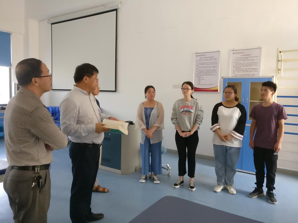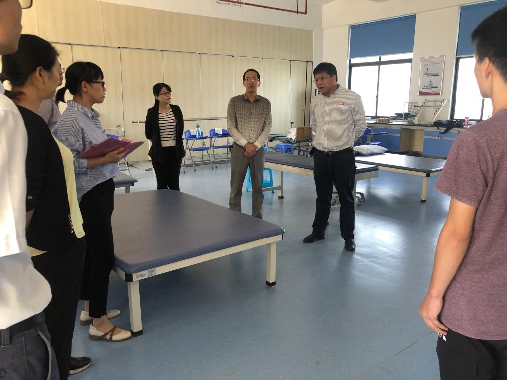 2019年10月22日,苏友新院长、系郭礼坚主任、陈洁副书记、林浩副主任、陈铭副主任等一行专程赴实训楼107室,看望指导即将参加第四届全国康复治疗技术专业学生技能大赛的选手和指导老师。