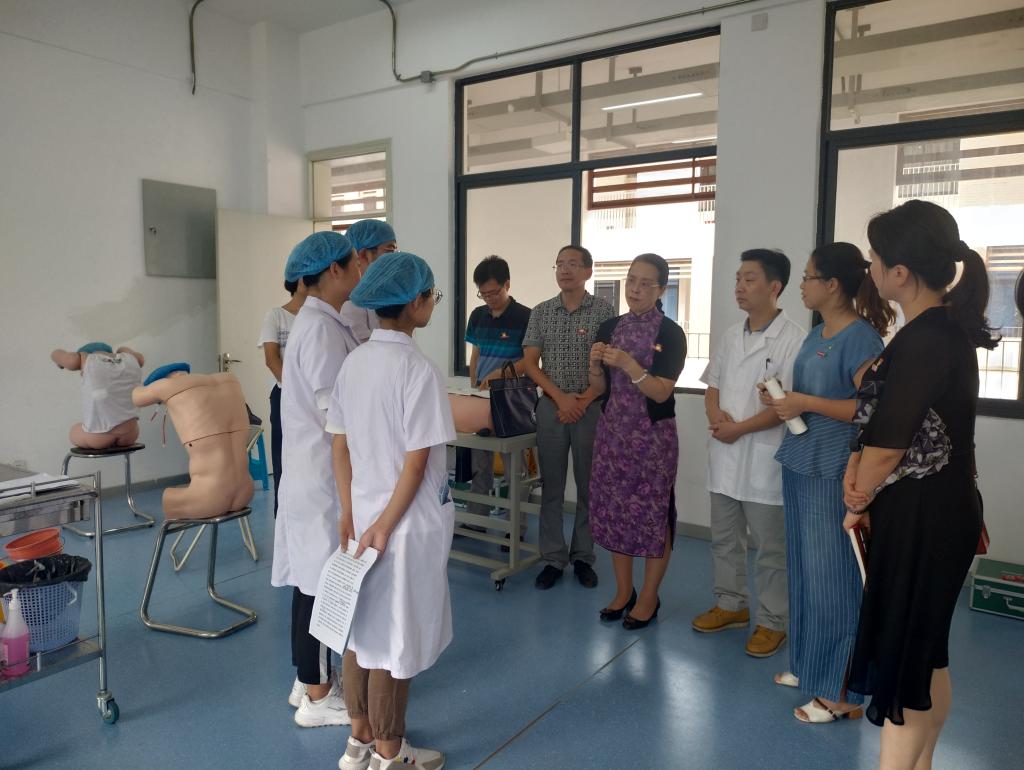 2019年10月12日,学院郑翠红副院长、临床医学系郭礼坚主任、陈俊颖副书记等一行专程赴实训楼413室,慰问辛苦备战的指导教师及参赛学生,鼓励师生们在备战的攻坚阶段,不怕苦、不怕难,以最好的状态去迎接比赛。随后,郑翠红副院长针对三位参赛选手技能操作、参赛注意事项、服装礼仪等方面的问题进行了详细的现场指导,并分享自身的比赛经验,师生们受益匪浅。郑翠红副院长高度重视临床医学专业的国赛选手培训工作,指示要联系校内、外行业专家进行专业的指导,鼓励参赛选手们要珍惜时间、集中精力、勤加练习,争取在比赛中赛出水平、取得佳绩。