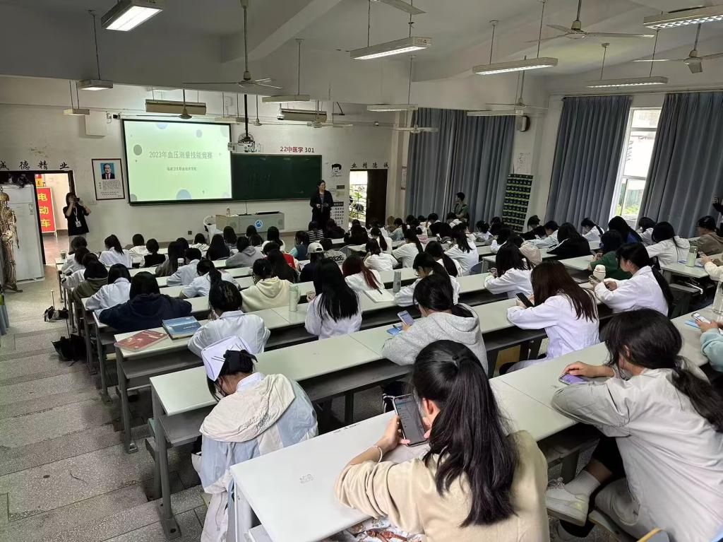 此次活动是医学院首届文化科技节暨技能竞赛月系列活动之一,包括:理论考试初赛及技能操作决赛两部分。本次比赛共有208名来自不同专业的同学参加。在初赛中,每位参赛同学进行线上答题,考核血压测量操作相关知识,取成绩位列前30名的同学进入决赛。