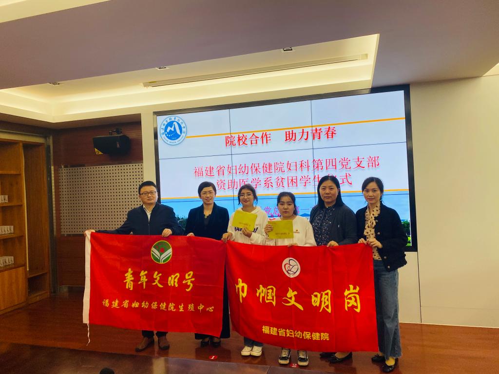 11月5日下午,福建省妇幼保健院妇科“青年文明号”创建小组再度到我校医学系开展“院校合作 助力青春”捐资助学活动,妇科第四党支部书记郑备红、妇科青年文明号号手魏慧娟、生殖医学中心副主任孙艳、胚胎实验室主任杜生荣,我校副校长郑翠红、医学系党总支书记邱滚忠、副书记陈洁,医学系第一党支部书记朱翔、部分党员教师及受资助的两位21级康复治疗技术专业学生参加了本次活动,活动由朱翔主持。