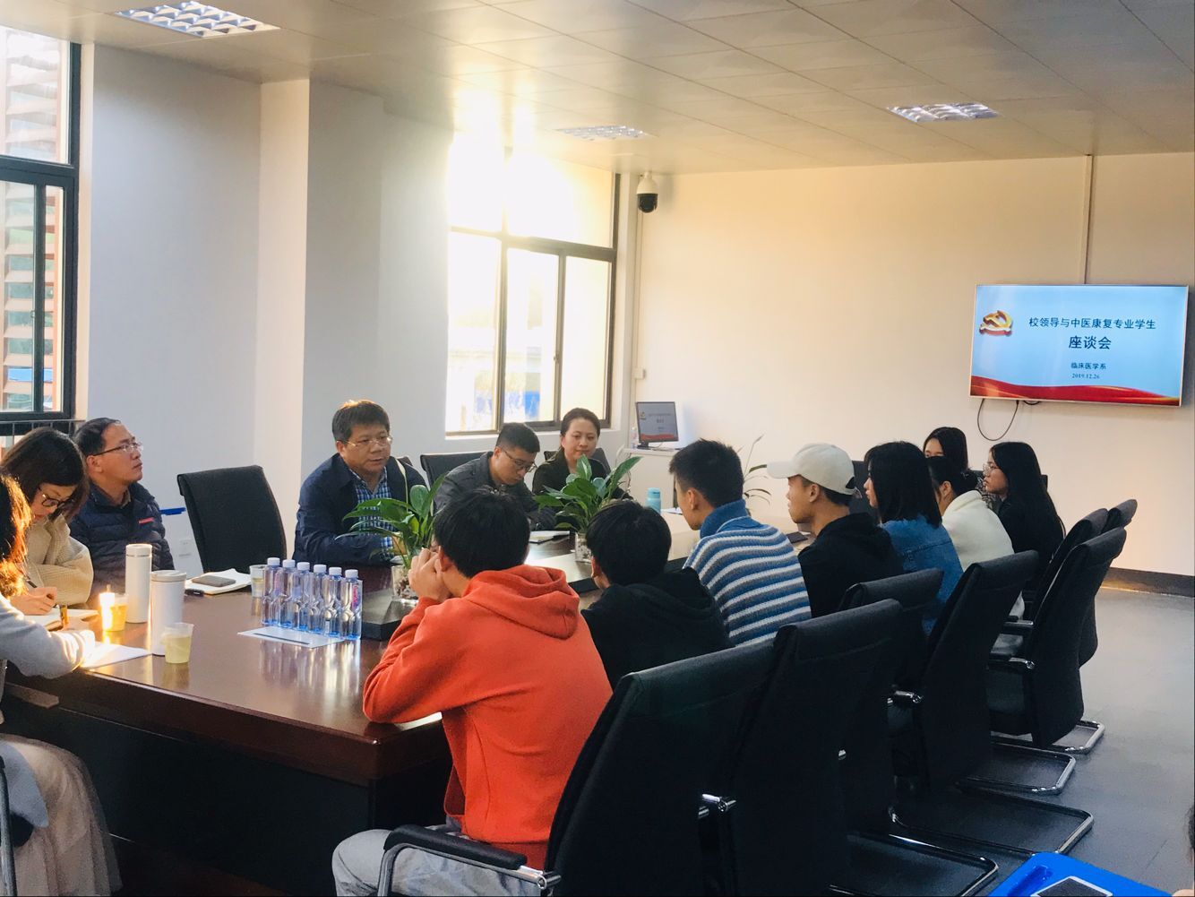 12月26日,临床医学系在实训楼310会议室召开2019级中医康复技术专业学生座谈会。校长苏友新、办公室秘书科林来元科长、临床医学系郭礼坚主任、陈俊颖副书记、林国威副主任、康复教研室徐丽莺老师、沈书泓老师、2019级中医康复技术专业辅导员黄惠龙老师、2019级中医康复技术专业的全体学生参加会议。座谈会由陈俊颖副书记主持。