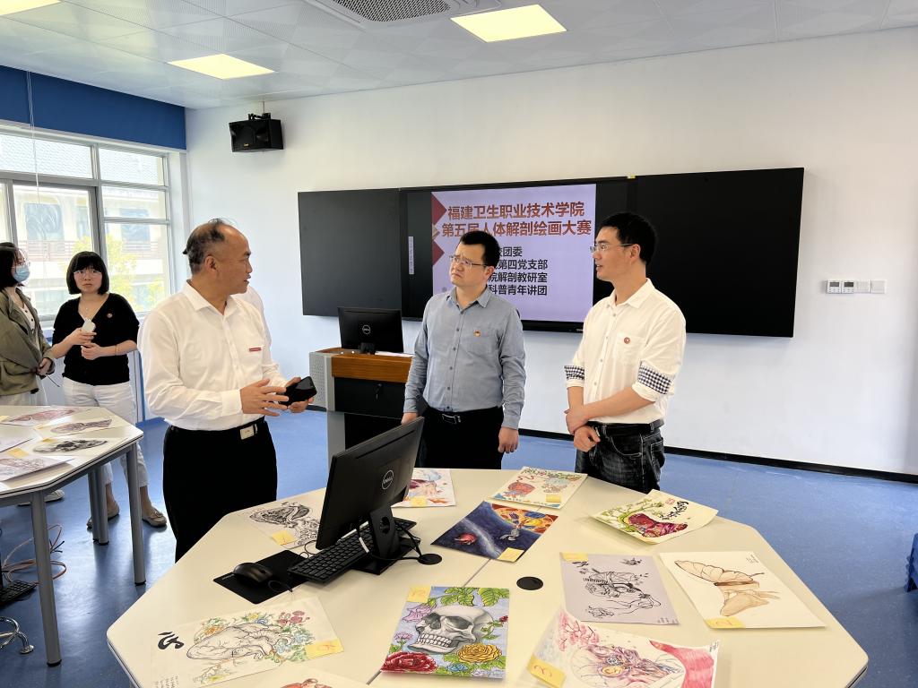 5月19日,校长许能锋来到医学院第四党支部和医学院解剖教研室,走进福建卫生职业技术学院第五届解剖绘画大赛的评选现场。本次比赛由校团委、医学院第四党支部、医学院解剖教研室、校健康科普青年讲团联合举办。活动共收到全校2020级、2021级各专业学生提交的近200幅作品。经过初次评选,有40幅作品进入到现场评选环节。