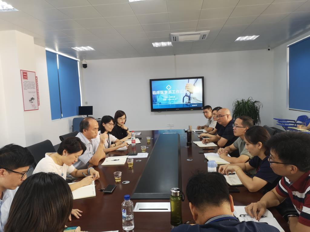 2020年8月28日,我院新任校长许能锋携教务处处长朱扶蓉、院办公室科长林来元到临床医学系开展调研工作。临床医学系全体行政人员、各党支部书记、各专业带头人及教研室主任等参加。