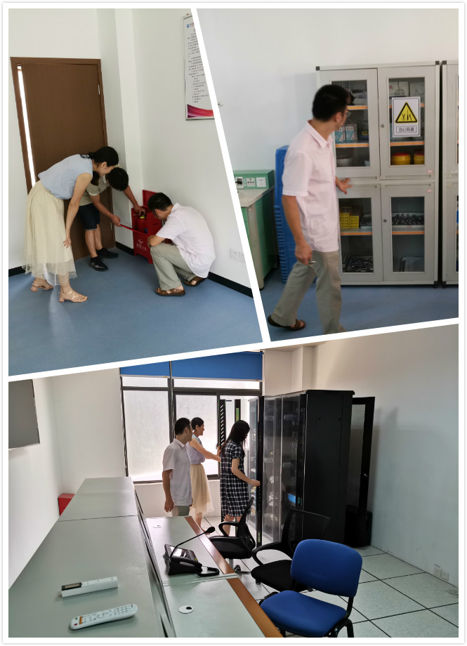 系副主任林浩带领行政人员仔细查看了实训楼各教研室、教室的消防、水电等情况并进行了详细记录,总体情况良好,部分教室存在窗钩损坏的问题,已报修。系实训中心主任陈铭带领实验员对各实训室的消防安全、水电安全、危险化学品保管、仪器设备维护保养以及卫生情况等进行了详细的检查,总体情况良好,部分仪器连接问题已于整改。由系副书记陈洁带领辅导员对学生宿舍进行检查,对部分床板松动等问题进行了反馈。