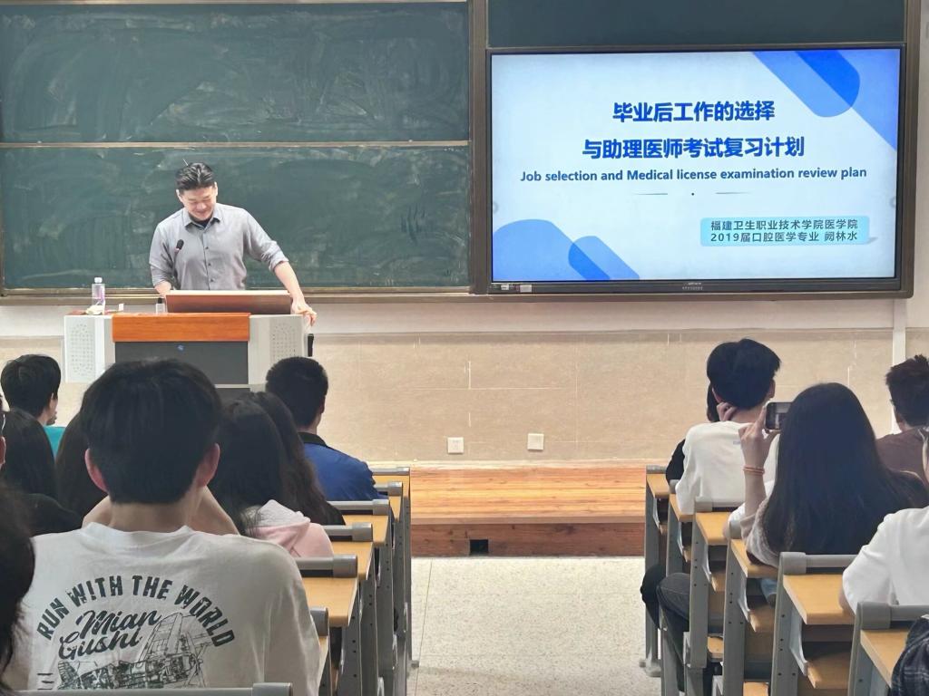 2019届口腔医学专业优秀毕业生阙林水告诫毕业生要放下先入为主的观念,积极争取学习机会,在试用岗位上发光发热,以积极、乐观、友善的工作状态对待病人及同事。