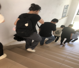 二是应急逃生演练(消防、地震)。安全工作处林泽文老师详细介绍消防器材使用、疏散信号、疏散路线、疏散顺序等注意事项,并强调在疏散过程中切勿拥挤、推搡导致踩踏事件发生。演练工作组接到演练指令后,燃放烟雾,迅速开启实训室的安全出口大门,组织学生弯腰、捂口鼻、无人喧哗、迅速有序地撤出实训室,按照指定路线,从楼梯通道内侧撤离,到空旷位置集合并清点人数。