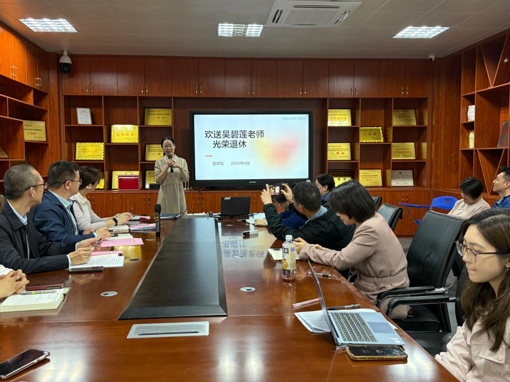 春风化雨三十载,桃李成荫四海香。4月24日下午,医学院全体教职工相聚一堂为吴碧莲老师举行退休欢送会,共同回顾她深耕教坛的春秋岁月,致敬她立德树人的师者担当。