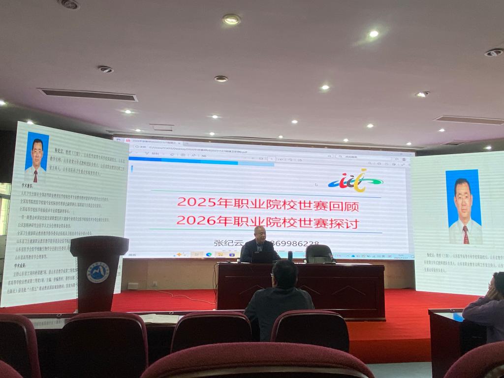 为深入总结2025年世界职业院校技能大赛参赛经验,科学谋划2026年备赛工作,进一步推动“以赛促教、以赛促学、以赛促改、以赛促建”工作,11月27日,我校特邀山东医学高等专科学校原副校长张纪云在笃行楼四楼会议室开展《2025年职业院校世赛回顾,2026年职业院校世赛探讨》专题讲座。讲座由徐伟校长主持,各二级学院教师代表参加。