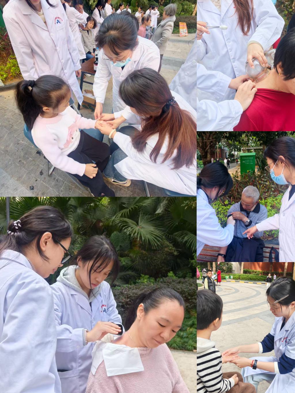 在党员教师的指导下,“舒幼社”学生志愿者为社区居民提供了刮痧、拔罐、推拿(包括小儿推拿)等中医特色服务,帮助居民缓解身体不适,深受社区群众欢迎。多位居民表示,通过亲身体验中医外治技术,不仅感受到传统医学的独特魅力,也增强了日常自我保健意识。
