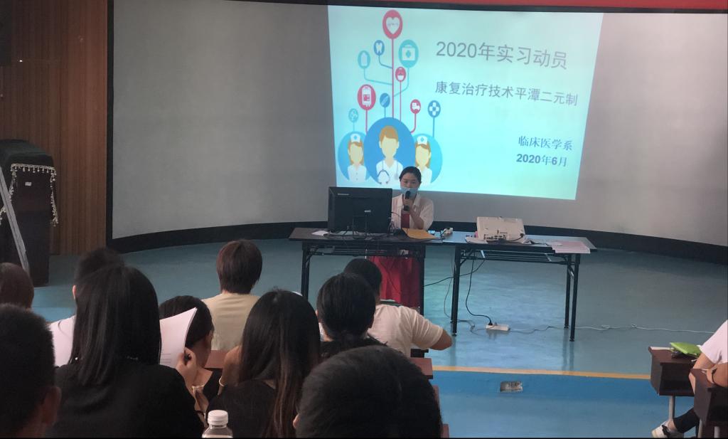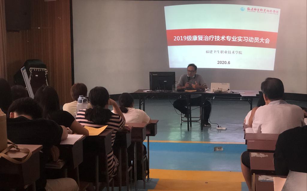 为进一步完善平潭“二元制”学生第一阶段实习工作,确保学生在常态化疫情防控形势下能安全、顺利的完成实习,6月27日,临床医学系林国威副主任、康复专业郑松老师及辅导员蔡唐彦老师赴平潭,对19级二元制康复治疗技术专业学生开展实习动员大会。