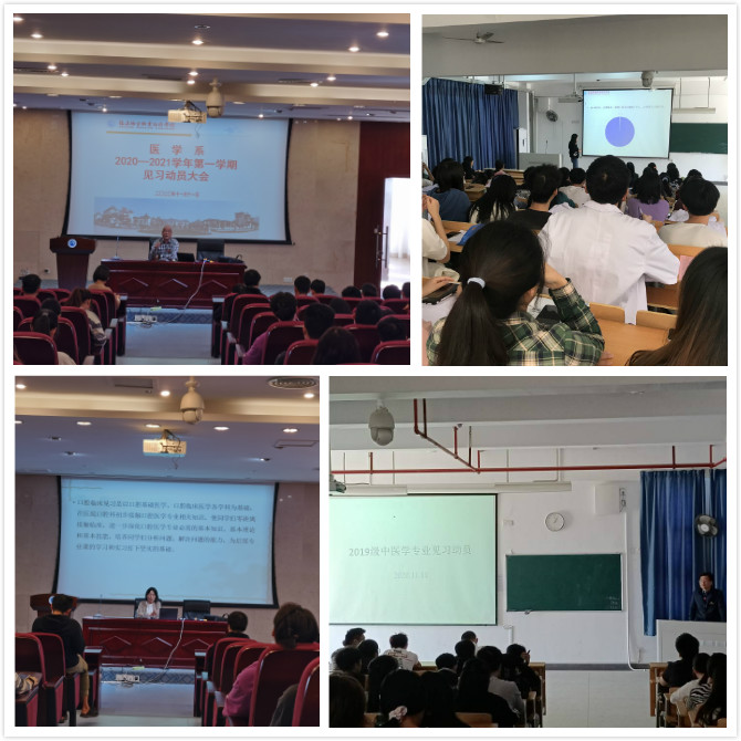为促进19级学生医院见习工作的顺利进行,让同学们对见习有更加深刻的了解,医学系于11月11日中午分四个会场开展19级学生医院见习动员大会,医学系党总支书记邱滚忠、临床医学专业王芳老师、针灸推拿张蕴老师、口腔医学马清璇老师、中医学陈铭老师、我系各辅导员及19级学生参加此次动员大会。